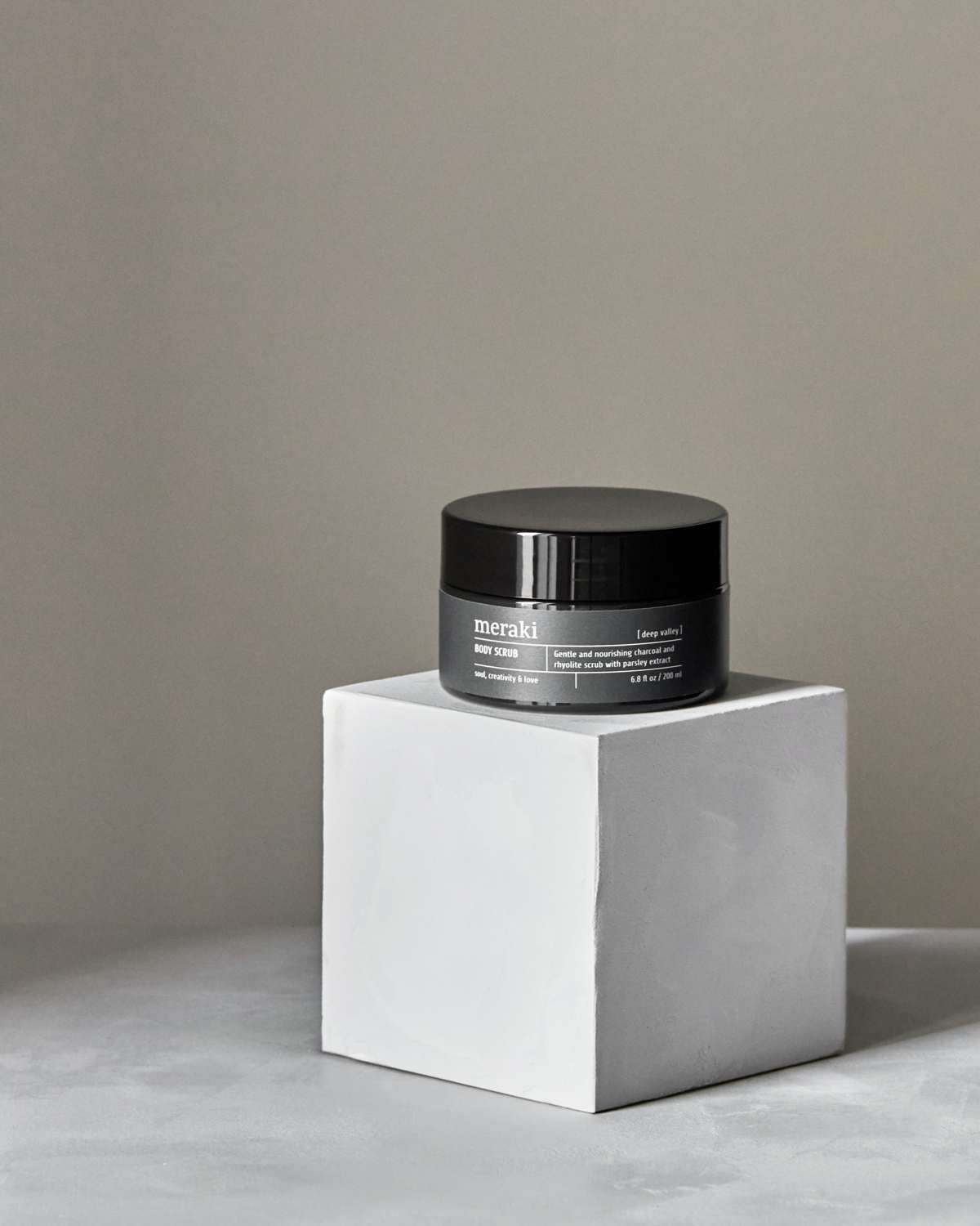 The grey tone hints at its deep-cleansing nature, while invigorating notes of bergamot, orange and fresh green open into a heart of cooling mint and lemongrass. Earthy woods anchor the scent, creating a soothing atmosphere as you exfoliate.