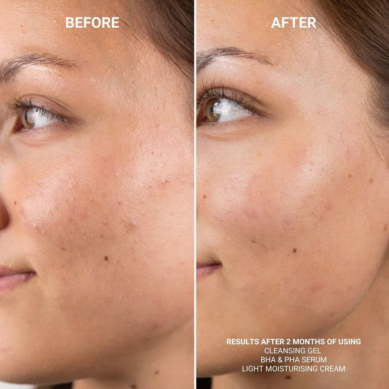 Cleansing Gel renser effektivt med 5% Gluconolactone (PHA) og naturlige BHA’er, der eksfolierer blidt og renser porerne i dybden. Agurkekstrakt beroliger og fugter, så huden efterlades frisk, blød og i balance.